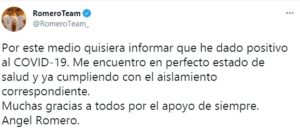 ÁNGEL ROMERO POSITIVO DE CORONAVIRUS